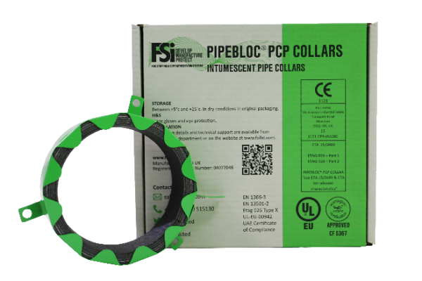 PipeBloc®PCP has been developed utilizing specialist intumescent technologies which result in the collar expanding in the presence of heat or fire. This expansion is fast acting and up to 25 times. The expanding collar fills the void left by combusting materials and remains in place, exerting a pressure on the surrounding substrate upholding the fire resistance of the compartment.