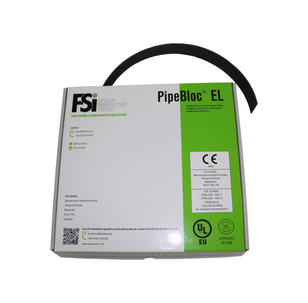 PipeBloc®EL has been developed utilizing specialist intumescent technologies which result in the wrap expanding in the presence of heat or fire. This expansion is fast acting and up to 25 times. The expanding wrap fills the void left by combusting materials and remains in place, exerting a pressure on the surrounding substrate upholding the fire resistance of the compartment.